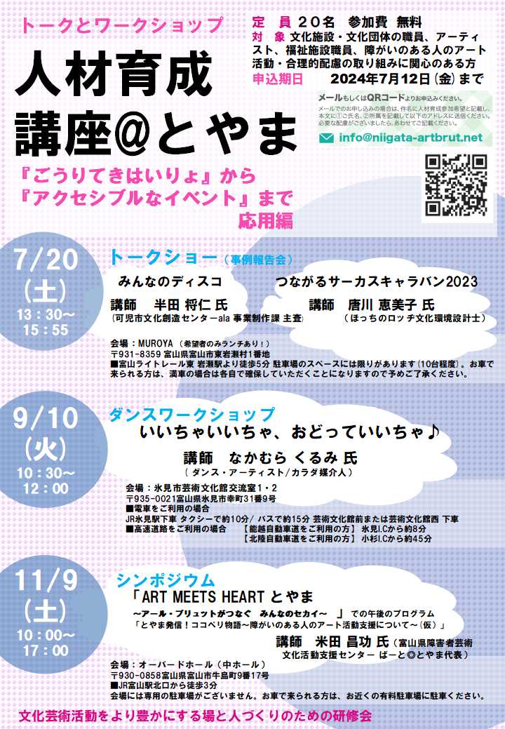 対 象:入門編に参加された方、文化施設・文化団体の職員、アーティスト、福祉施設職員、合理的配慮の取り組みに関心のある方